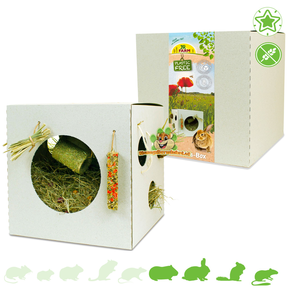 De JR FARM Active-Box is een spannend speelparadijs voor actieve knaagdieren en konijnen, dat niet alleen voor plezier en activiteit zorgt, maar ook een gezonde voeding bevordert. Gemaakt van Graskarton biedt deze innovatieve box een scala aan mogelijkheden om de dieren bezig te houden en tegelijkertijd te verwennen met natuurlijke lekkernijen.