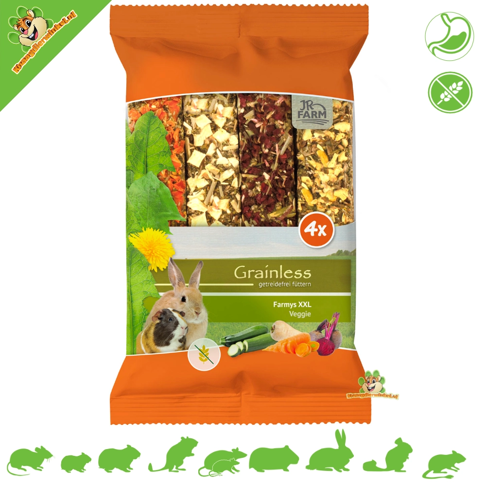 Verwen je knaagdieren met een assortiment van smaken en texturen - JR Farm Grainless Farmys XXL Pack. Zie hoe ze genieten van elke knapperige hap terwijl ze hun tanden gezond houden.
