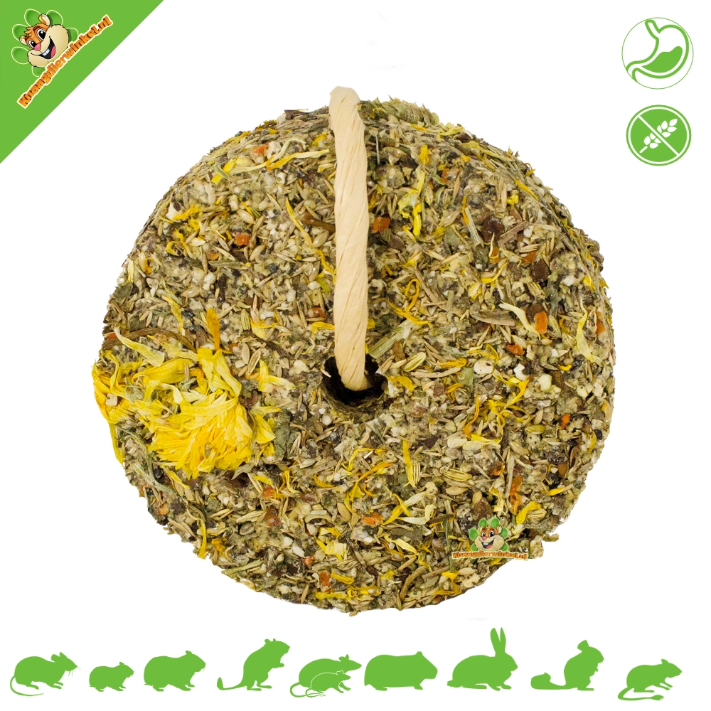Het JR Farm Grainless Kruiden Wiel Paardenbloem & Goudsbloem is speciaal ontwikkeld om je knaagdieren een smakelijke en voedzame traktatie te bieden. De toevoeging van paardenbloem en goudsbloem bloesems voegt niet alleen een heerlijke smaak toe, maar ook waardevolle voedingsstoffen die kunnen bijdragen aan hun welzijn.