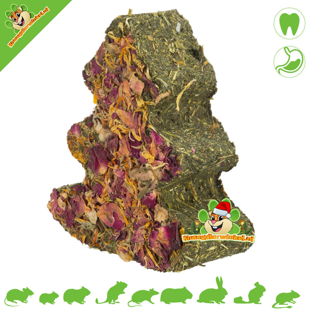 Gemaakt van heerlijk gedroogde peterselie, is deze kerstboom een ware traktatie voor de smaakpapillen van je harige vrienden. Elke hap brengt de frisse, natuurlijke smaak van peterselie naar voren, en om het nog feestelijker te maken, is hij besprenkeld met keuzeopties: rozenbloemen voor een vleugje elegantie of gedroogde wortel voor extra knaagplezier.