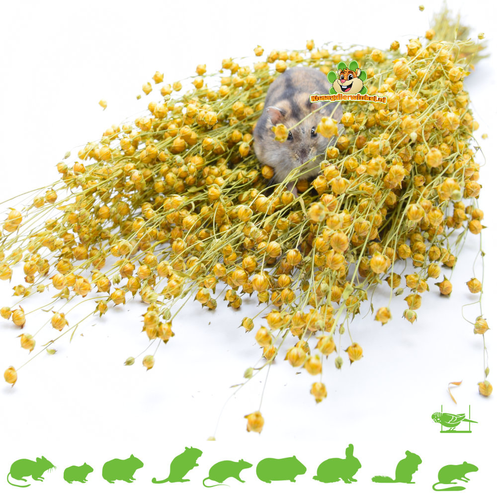 Ja hoor zeker! De Lijnzaad Vlas Oogst valt onder de oogst met zaden, dat is weer anders dan oogst met bladeren of oogst met kruiden. De oogst met zaden is als voeding het beste geschikt voor de Granivore (zaad etende) knaagdieren, zoals muis, dwerghamster, hamster, gerbil en rat.