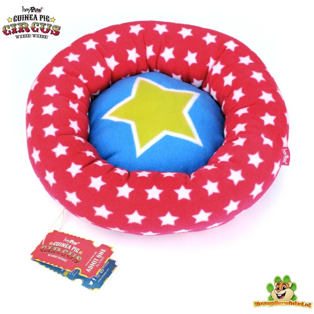 De HayPigs Circus Piggy Crash Fleece Mat en Mandje 35 cm is een extra grote, zachte rustplek voor dieren die graag languit liggen, dutten of beschut ontspannen. Vooral voor cavia’s is een comfortabele ligplek een fijne aanvulling in het verblijf of in de ren, maar ook ratten en andere grotere knaagdieren kunnen hier heerlijk in wegzakken. Door de opstaande rand voelt het mandje geborgen aan, terwijl de zachte fleece mat zorgt voor extra comfort.