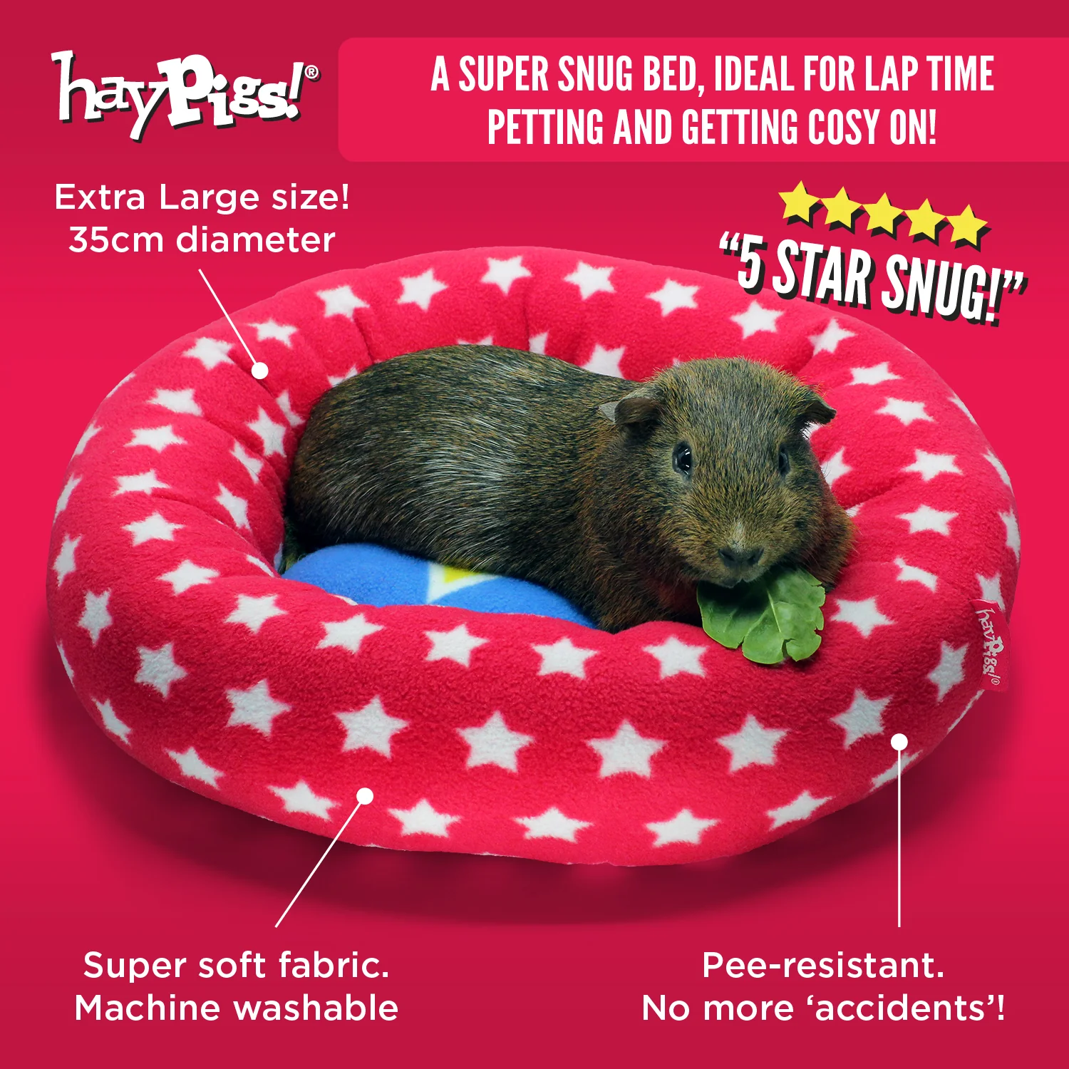 Zoek je een zachte, ruime en comfortabele rustplek voor een dier dat graag lekker ligt? Dan is de HayPigs Circus Piggy Crash Fleece Mat en Mandje 35 cm een fijne keuze voor cavia’s, ratten en andere knaagdieren die houden van comfort.