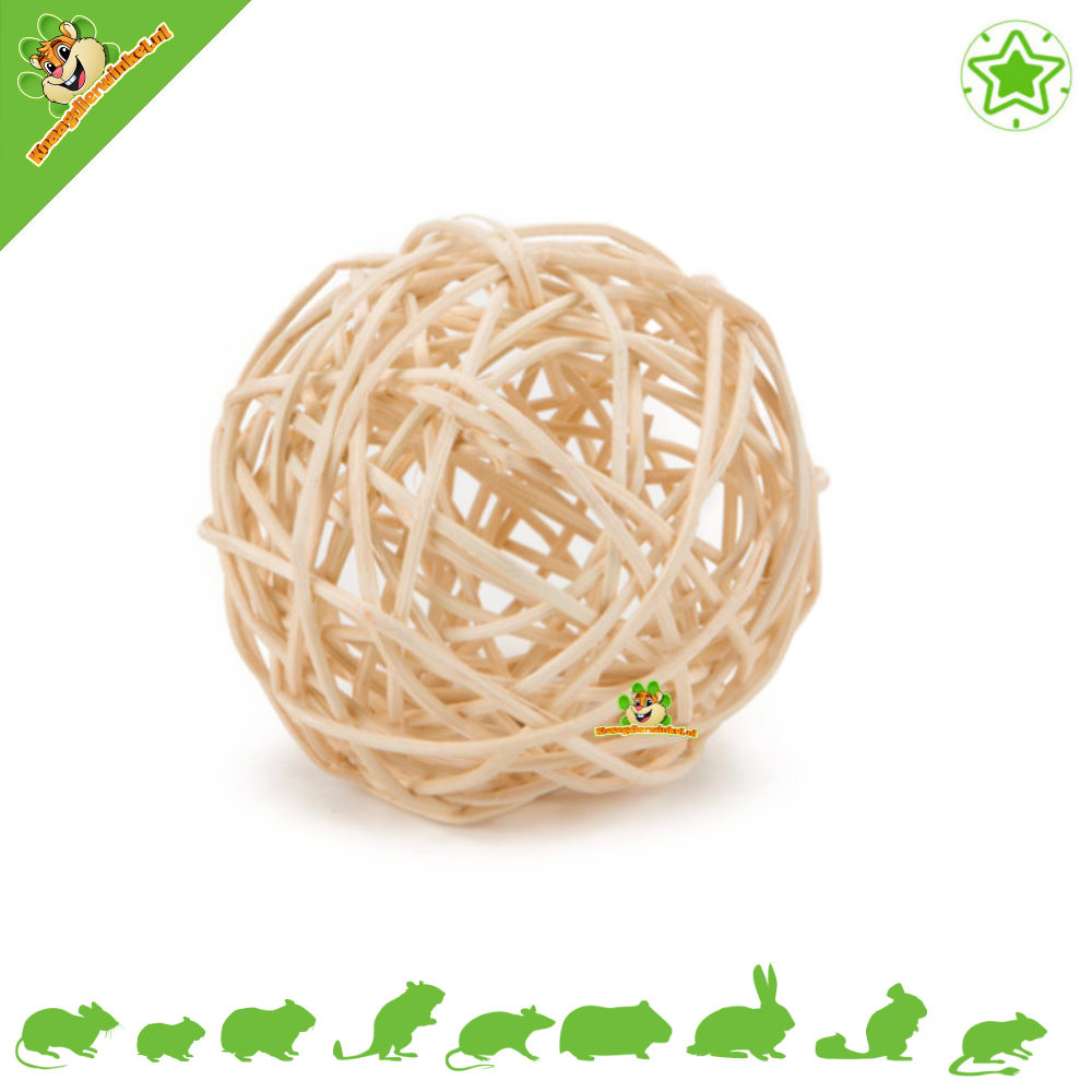 Lichtgewicht rattan bal die perfect is om aan te knagen, mee te gooien of te vullen met snacks of hooi. Stimuleert natuurlijk gedrag en voorkomt verveling.