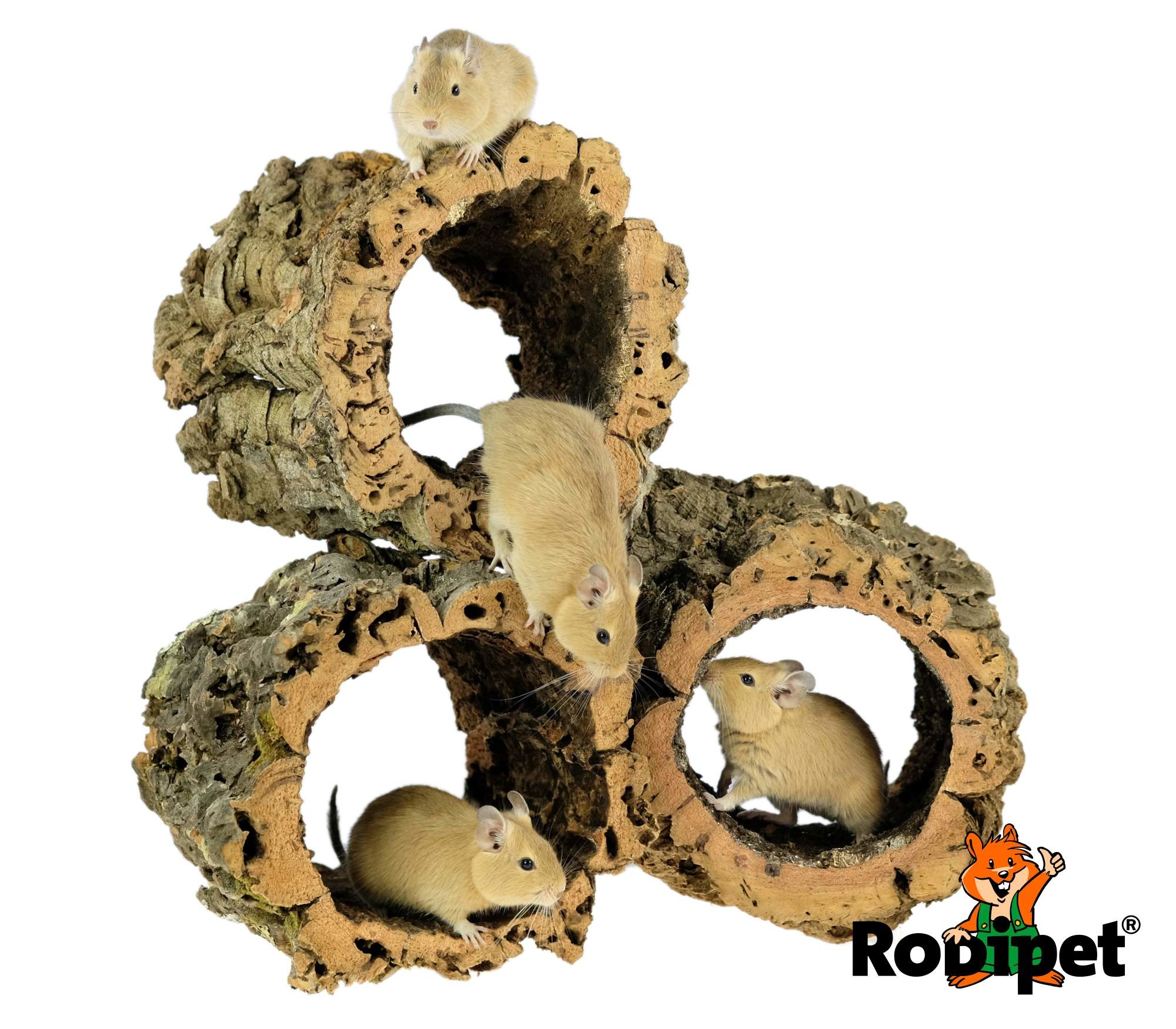 Kurktunnels bieden niet alleen een verstopplekje, maar geven de dieren ook de mogelijkheid om een beetje te klimmen. Voor muisjes, gerbils en degoes is een kurktunnel absoluut geen uitdaging, omdat deze dieren goed kunnen klimmen, maar voor dwerghamsters is dat al een ander verhaal. Dwerghamsters zijn van nature slechte klimmers, maar wat zullen ze trots op zichzelf zijn als ze een kurktunnel trotseren!