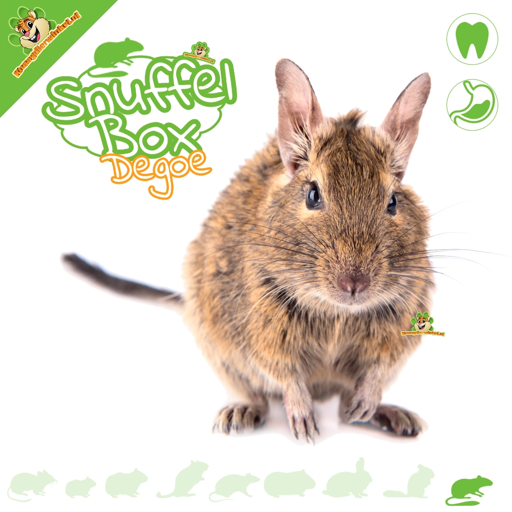 Degoes zijn slimme, actieve dieren die graag bezig zijn. Daarom is de Snuffelbox Degoe zo’n leuke keuze: een verrassingsbox waarmee je op een simpele manier meer variatie en verrijking in het verblijf brengt. De inhoud blijft geheim, maar je mag wél rekenen op een combinatie van items die uitnodigen tot zoeken, knabbelen, ontdekken en bezig zijn – precies waar degoes van houden.