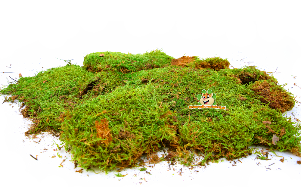 Mooie plakken groen mos. Leuk om het verblijf een natuurlijke uitstraling te geven. Blijft ook na langere tijd mooi. Mijn hamster doet er verder niks mee en loopt er alleen maar overheen. Voor gebruik heb ik het wel een tijdje in de vriezer gelegd en daarna uit de verpakking laten drogen.