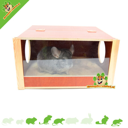 Dit Badhuis is speciaal ontworpen voor chinchilla's, die regelmatig een stofbad nodig hebben om hun vacht in optimale conditie te houden. Maar laten we eerlijk zijn, het is ook gewoon ontzettend leuk om te zien hoe ze zichzelf helemaal onderdompelen in het zand. En met dit bijzondere zandbadhuis blijft het zand netjes binnen boord!
