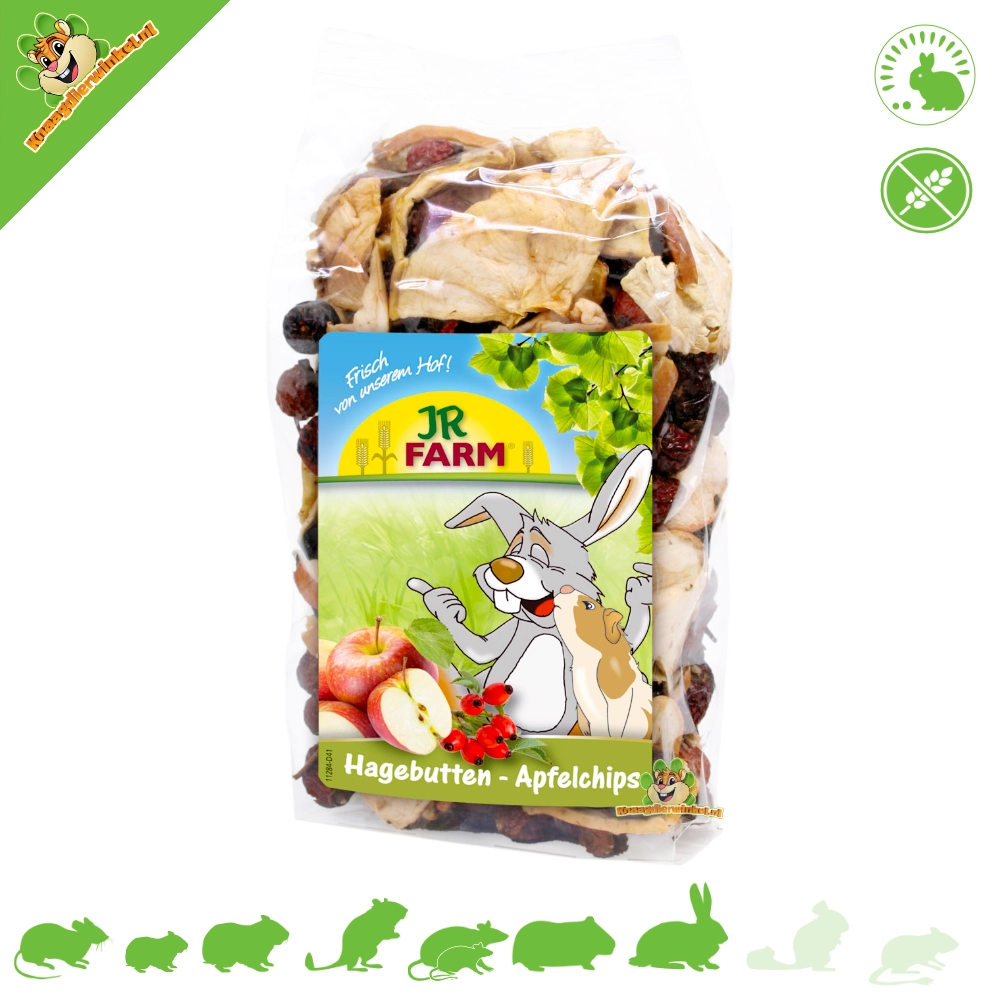 Podaruj swoim ukochanym gryzoniom i królikom pyszną przekąskę dzięki smacznym chipsom JR Farm z dziką różą i jabłkiem! Ta specjalna przekąska została specjalnie opracowana, aby rozpieszczać Twoje małe zwierzaki połączeniem owoców róży i jabłek, dwóch ulubionych składników, które pokochają.