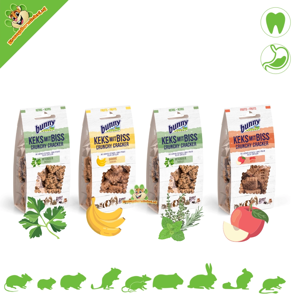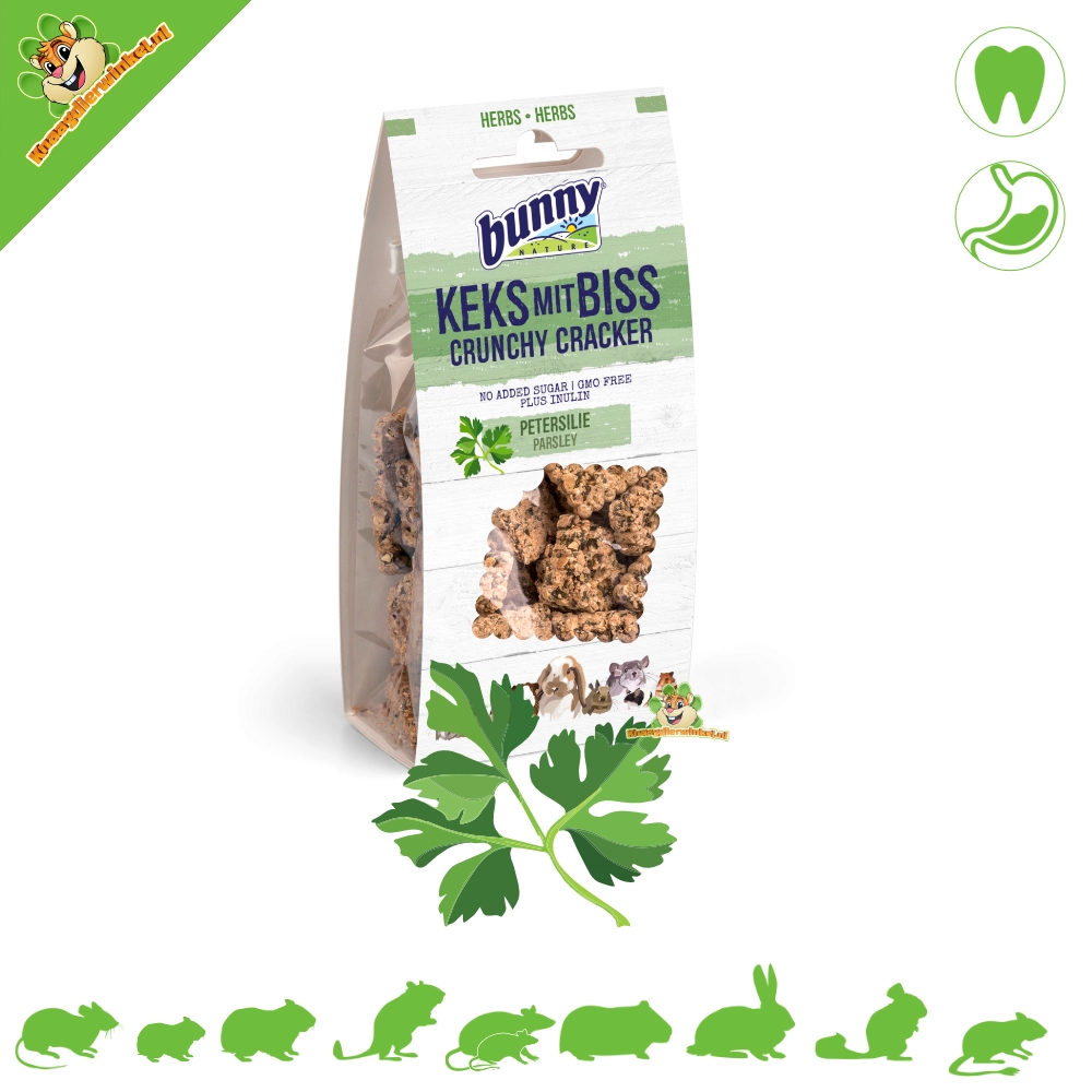 Bunny Nature Crunchy Cracker to pyszna, chrupiąca przekąska, która nie tylko jest smaczna, ale także korzystnie wpływa na zdrowie Twojego pupila. Te wyjątkowe krakersy zawierają cenną inulinę, naturalny błonnik pokarmowy, który wspomaga florę jelitową. Dzięki temu Twój pupil otrzymuje smaczną przekąskę bez skoków cukru we krwi i niezdrowych przerw na posiłek.