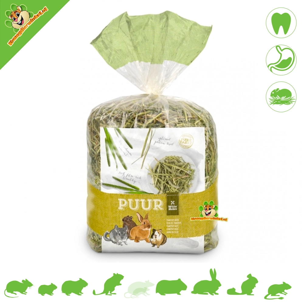Podaruj im czystą przyjemność z sianem Witte Molen PURE Timothy Hay ! To siano to idealny dodatek do ich codziennej diety. Siano kwiatowe Witte Molen znane jest z wysokiej zawartości włókna surowego, które wspomaga zdrowe trawienie i mocne zęby. Dodatkowo, to świetny sposób, aby zapobiec nudzie, gdy Twój futrzany przyjaciel delektuje się pysznymi smakami natury!
