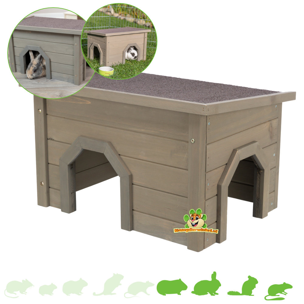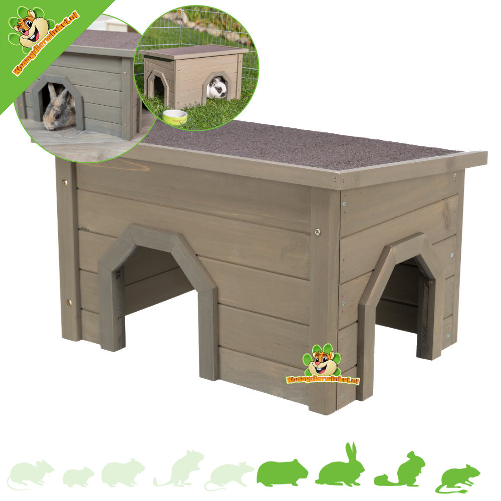 Ten czarujący domek dla królików to nie tylko bezpieczne schronienie, ale także stylowy dodatek do legowiska lub ogrodu Twoich ukochanych gryzoni. Wykonany z wysokiej jakości drewna sosnowego i wykończony modną bejcą, ten drewniany domek jest idealny dla królików, świnek morskich, szynszyli i koszatniczek. To, co czyni go wyjątkowym, to dwa wejścia/wyjścia, co jest kluczowe dla zwierząt nielotnych. Papa asfaltowa na dachu nie tylko zapewnia ochronę przed czynnikami atmosferycznymi, ale także dodaje charakteru ich legowisku. Dostęp na dach jest również dozwolony, a nawet przydaje się do ścierania pazurów, więc „skakanie po dachu” jest dozwolone!