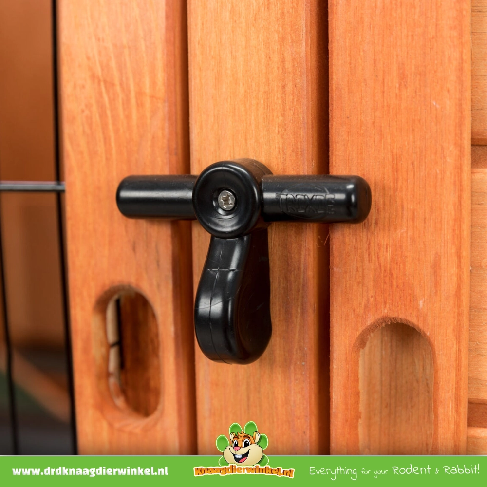 Ta klatka zewnętrzna nadaje się jako osłonięta baza dla królików lub świnek morskich, z bezpośrednio do niej przymocowanym stałym wybiegiem. Dla wielu właścicieli to doskonały punkt wyjścia, zwłaszcza jeśli szukają kompaktowego, a zarazem schludnego rozwiązania na zewnątrz. Jednocześnie, często można uzyskać więcej korzyści z tego typu klatki, w połączeniu z dodatkową przestrzenią na zewnątrz, dając zwierzętom większy wybór między odpoczynkiem, schronieniem i ćwiczeniami.
