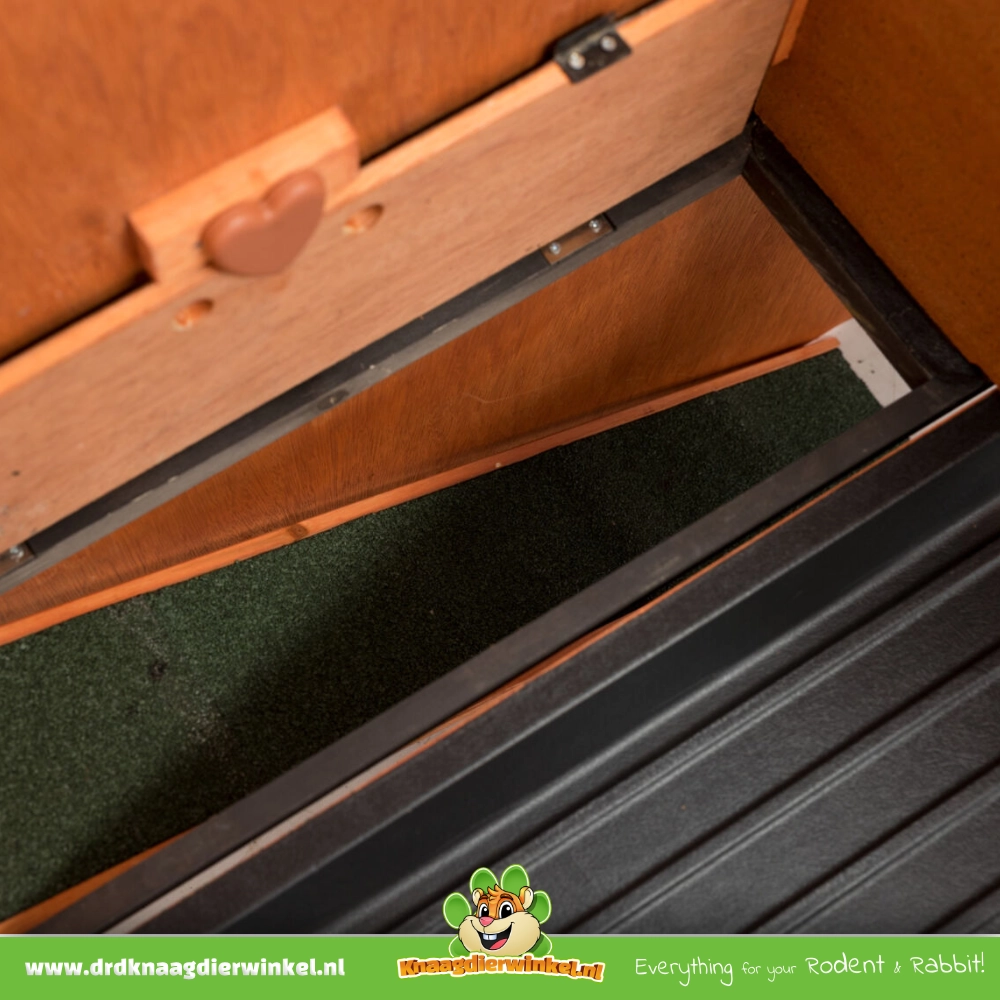Ten wybieg jest szczególnie interesujący dla właścicieli poszukujących dobrze zorganizowanej klatki ogrodowej, która łączy w sobie schronienie i dodatkową przestrzeń. Strefa sypialna zapewnia ciche schronienie, a wybieg pod spodem, połączony bezpośrednio z wybiegiem, zapewnia dodatkową przestrzeń do poruszania się. Dzięki temu model ten jest praktyczny do codziennego użytku w ogrodzie lub w osłoniętym miejscu na zewnątrz.