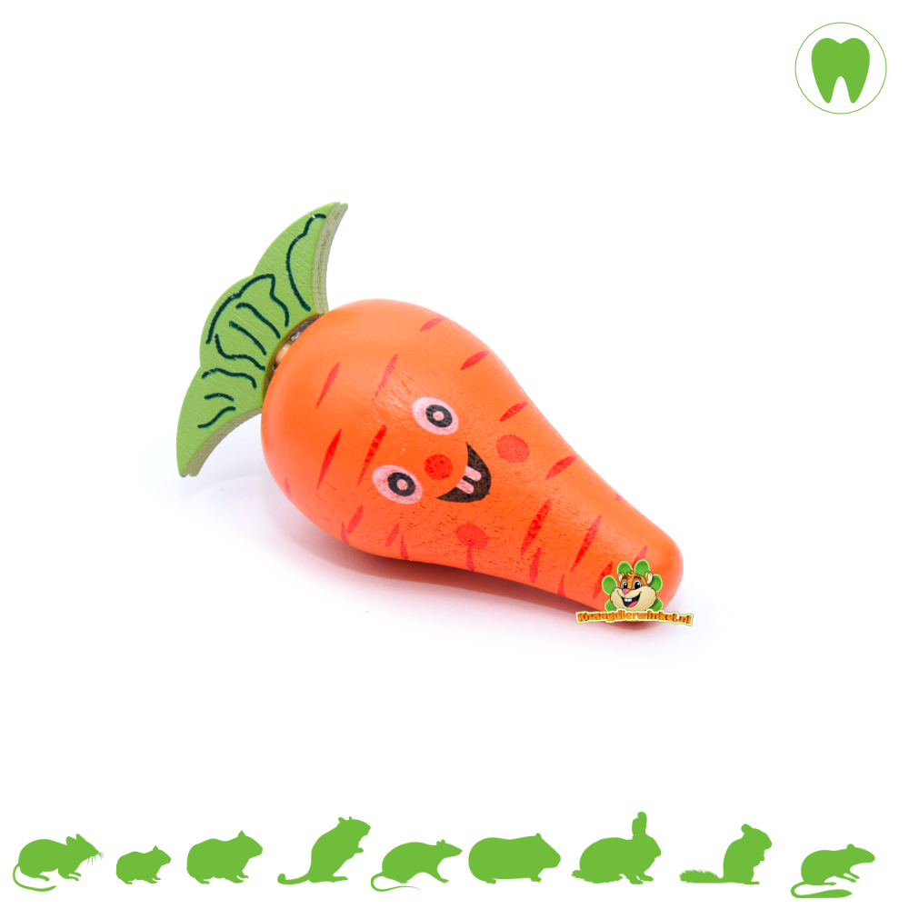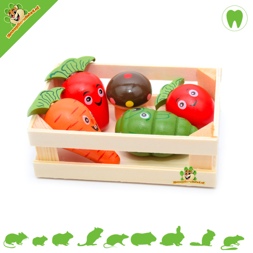Drewno do gryzienia w kształcie warzyw dostarczane jest w drewnianej skrzyni. Skrzynię można również bardzo ładnie wykorzystać jako stojak, na przykład.