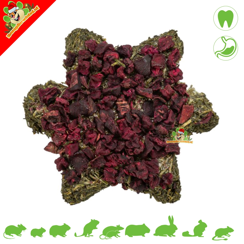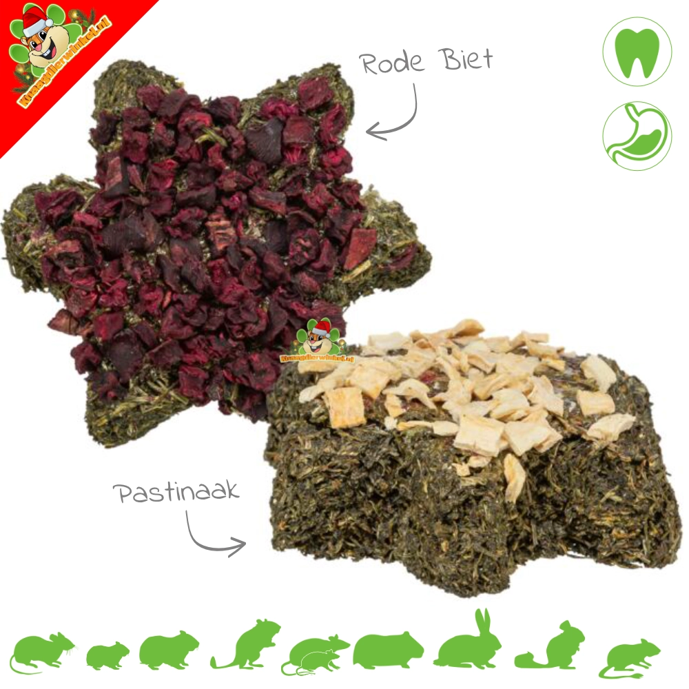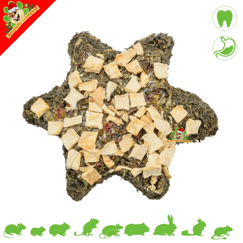 Gwiazdka Bożonarodzeniowa to świąteczny przysmak dla gryzoni i królików! Idealna, aby podarować swojemu pupilowi coś ekstra w czasie świąt. Gwiazdki są całkowicie bezzbożowe, wyprodukowane w 100% z naturalnych składników i nie zawierają żadnych sztucznych dodatków.