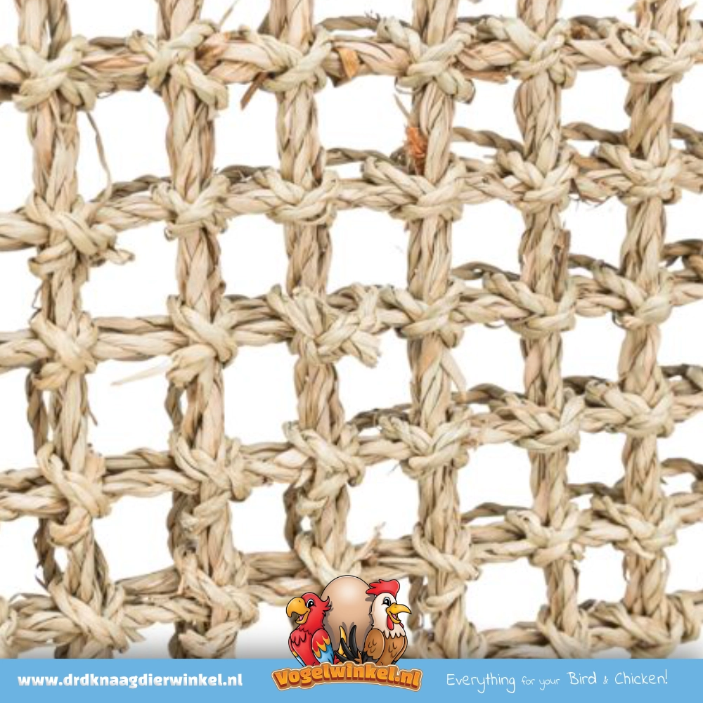 Mata o wymiarach 30 x 30 cm jest idealna dla ptaków i gryzoni, takich jak szynszyle, szczury i fretki. Trawa morska jest wytrzymała, bezpieczna i zachęca do wspinaczki i zabawy. Matę wspinaczkową łatwo zawiesić w zagrodzie, a także zapewnia różnorodność i stymulację umysłową. Wereldvogelpark Walsrode poleca ten produkt ze względu na naturalne materiały i zrównoważony design.