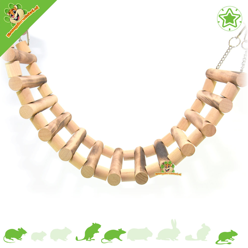 Witamy w przygodzie życia, przyjaciele gryzoni! Przygotuj się na wspinaczkę, odkrywanie i odkrywanie dzięki temu fantastycznemu drewnianemu mostowi wiszącemu o średnicy 77 cm! Wykonany z płomieniowanego, naturalnego drewna, most ten jest idealny dla odważnych wspinaczy i poszukiwaczy przygód wśród nas, takich jak myszy, szczury, myszoskoczki, a nawet koszatniczki!
