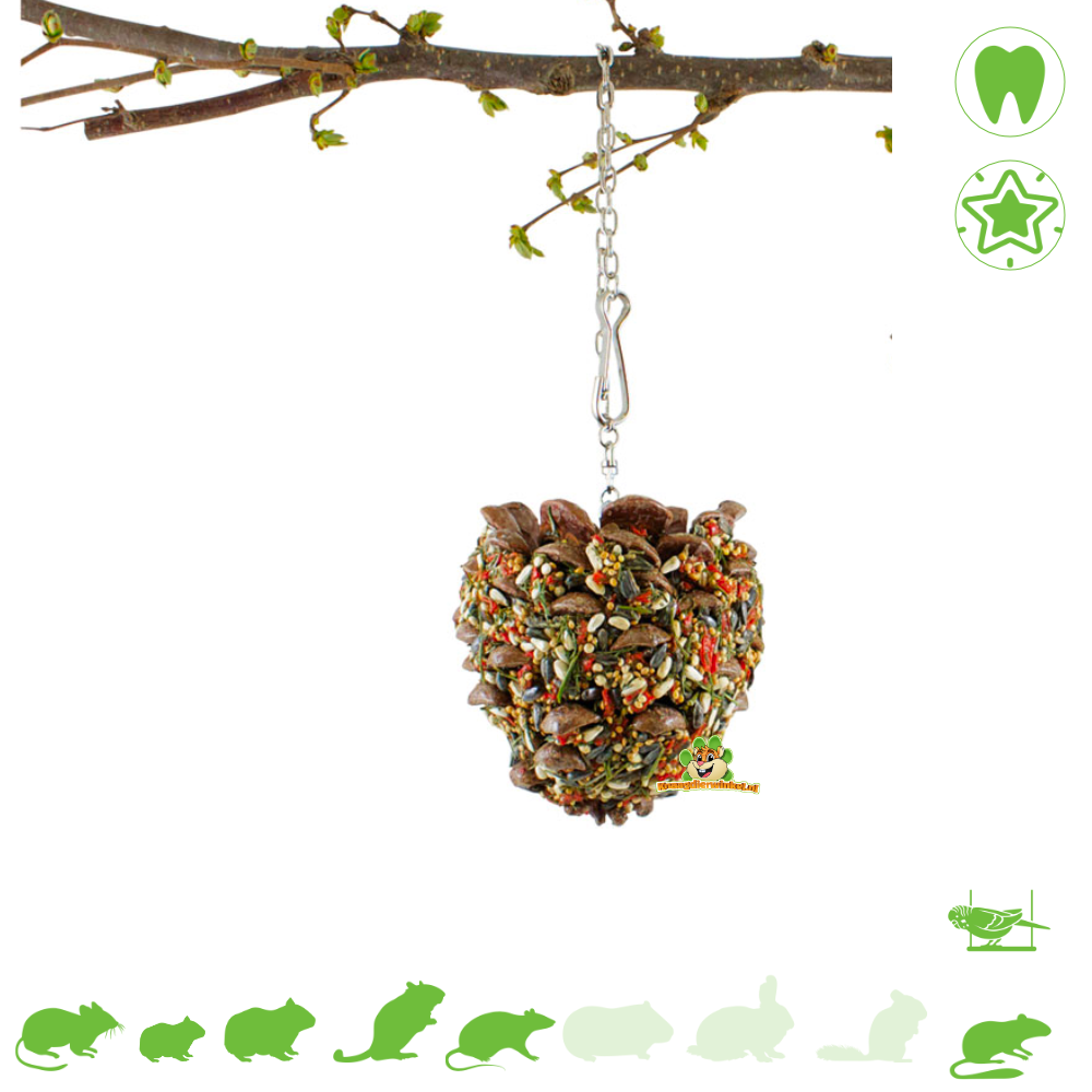 Te pyszne, wypełnione szyszki sosnowe XL nie tylko nie mogą się oprzeć małym gryzoniom, ale stanowią również nie lada wyzwanie. Zwierzęta muszą wydłubać smakołyki z szyszki, zanim będą mogły się nimi delektować! Małe gryzonie, takie jak myszy, chomiki karłowate, chomiki, myszoskoczki i szczury, mogą być zajęte na wiele godzin. A jako dodatkowy bonus, szyszki sosnowe są wypełnione pożywnymi nasionami!
