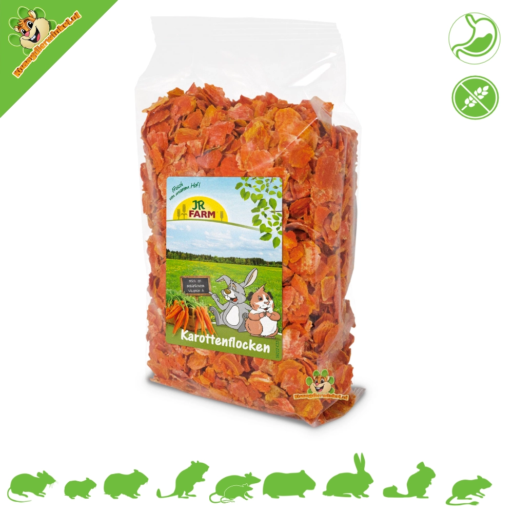Płatki marchewkowe JR Farm zostały starannie wysuszone i gotowane na parze, dzięki czemu zachowują wysoki procent naturalnych witamin i niezbędnego beta-karotenu. Płatki te są szczególnie przyjazne dla żołądka, a przede wszystkim smaczną i zdrową przekąską dla wszystkich gryzoni!