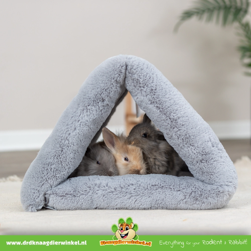 To urocze legowisko, wykonane z wysokiej jakości pluszu i pluszu krótkowłosego, stanowi przytulną kryjówkę, którą pokocha Twój królik, świnka morska, szynszyla, koszatniczka lub szczur. Powłoka poliestrowa i miękka wyściółka z pianki zapewniają wygodne i bezpieczne środowisko, w którym Twoi mali przyjaciele mogą się ukryć i zrelaksować.