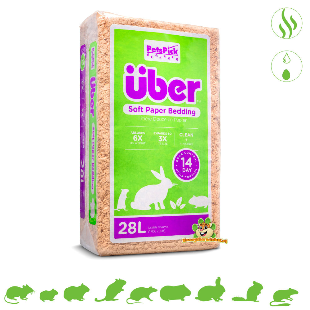 Odkryj komfort tej przytulnej, miękkiej ściółki wykonanej z rozdrobnionego papieru. Wielokrotnie nagradzane produkty Über oferują wysoką jakość, naturalność i przyjazność dla środowiska. Dzięki średniemu okresowi neutralizacji zapachów wynoszącemu 14 dni, wyróżniają się na tle konkurencji. Ta ściółka jest idealna dla myszoskoczków, chomików, myszy, świnek morskich, szczurów, szynszyli, królików i fretek, zapewniając komfortowe i zdrowe środowisko życia dla Twoich małych pupili!