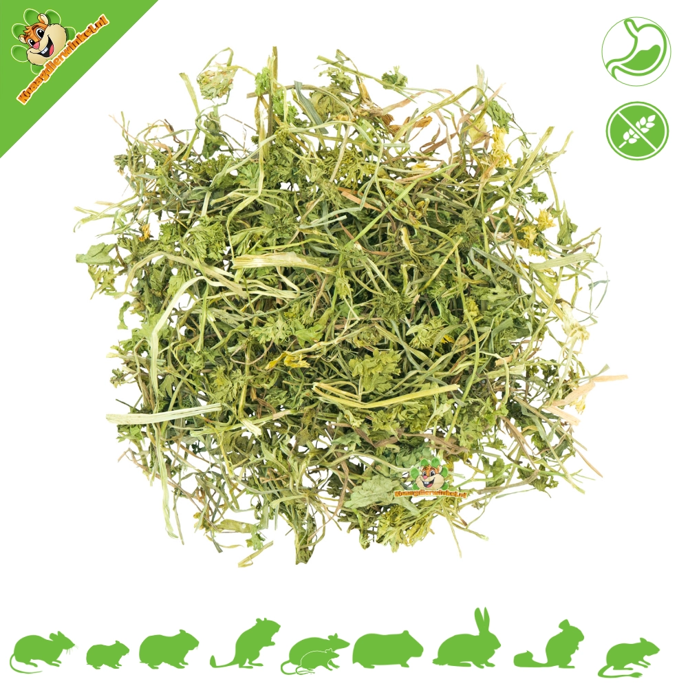 Mieszany z sianem lub innymi ziołami lub jako uzupełnienie codziennej diety.