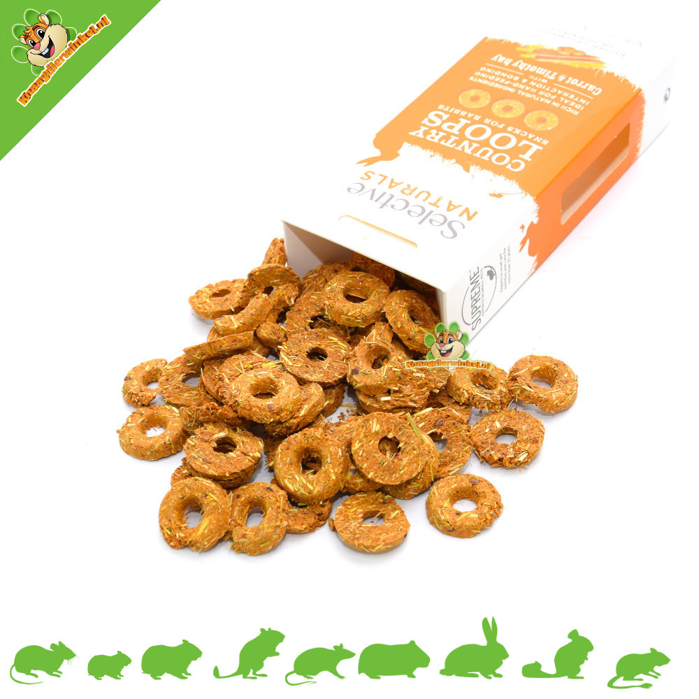 Podaruj swoim świnkom morskim, królikom, koszatniczkom i szynszylom rozkosz w postaci karmy Supreme Selective Country Loops z marchewką i sianem tymotkowym – to zdrowy i smaczny przysmak, który sprawi, że ich dzień stanie się naprawdę wyjątkowy!