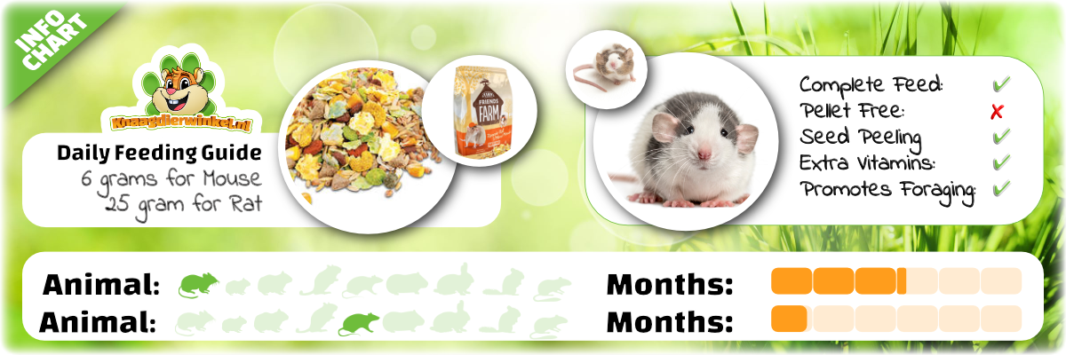 Tak, to naturalna karma dla myszy i szczurów. Skład jest dostosowany do naturalnych potrzeb żywieniowych tych zwierząt. Dodano prasowane granulki jako dodatkowe źródło błonnika i witamin oraz w celu wspomagania ścierania zębów.