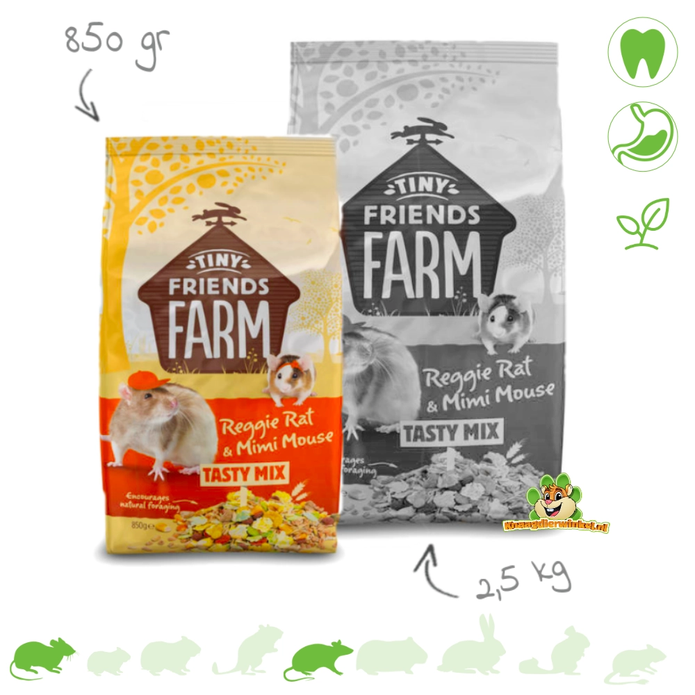 Podaruj swoim myszom , szczurom miniaturowym i domowym szczurom i myszom to, co najlepsze, dzięki Supreme Reggie Rat & Mimi Mouse Tasty Mix ! Ta kompletna, zbilansowana karma dla szczurów jest odpowiednia dla zwierząt w każdym wieku i każdej rasy . Mieszanka wspomaga trawienie, promuje naturalne zachowania żerowania i zawiera składniki, które przyczyniają się do zdrowej skóry, sierści i zębów. Pyszna, pożywna formuła, którą uwielbiają zarówno szczury, jak i myszy!