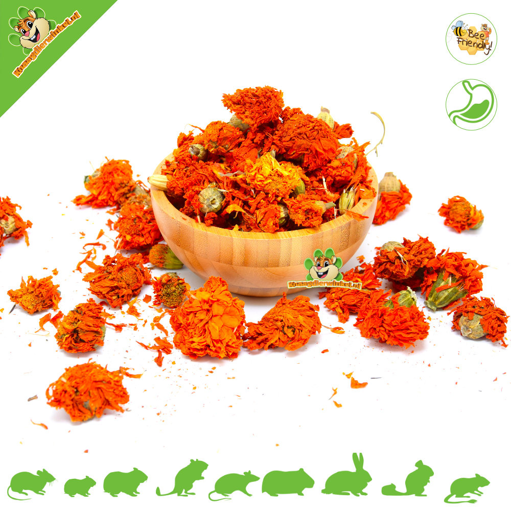 Dodaj odrobinę koloru, smaku i wartości odżywczych do życia swoich gryzoni i królików dzięki naszym suszonym nagietkom. Przysmak, który nie tylko pobudza ich zmysły, ale także wspiera ich zdrowie. Pozwól swoim pupilom cieszyć się naturalnymi skarbami, które mamy do zaoferowania!