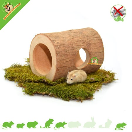 Ten piękny tunel z pnia drzewa wykonany jest z wysokiej jakości drewna mahoniowego i nadaje się dla małych gryzoni, takich jak myszy, chomiki karłowate, chomiki miniaturowe, myszoskoczki, szczury i koszatniczki. Dzięki spłaszczonemu dnu tunel nie przewróci się, co czyni go bardzo bezpiecznym dla małych gryzoni!