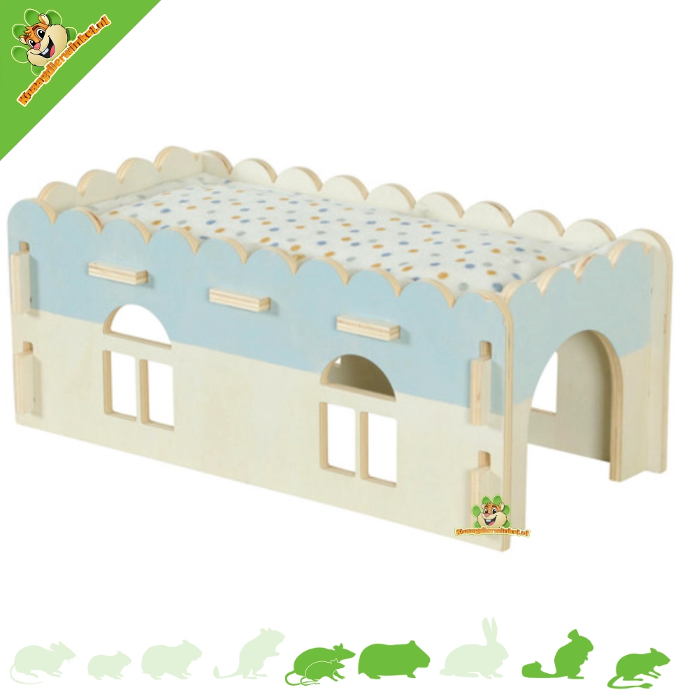 Przytulny drewniany domek dla świnki morskiej, niebieski, 40 x 21 x 16 cm €25,95
